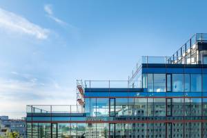 Pracownicy biurowca i mieszkańcy okolicy będą mogli zadbać o formę w klubie Fitness Academy, który otworzy się na pierwszym piętrze. Charakterystyczna schodkowo ukształtowana bryła to dzieło architektów z wielokrotnie nagradzanej pracowni Kuryłowicz + Associates. Deweloper i projektanci zadbali także o atrakcyjne zagospodarowanie terenu przed biurowcem. Będzie tu można odpocząć, napić się kawy czy zjeść lunch.