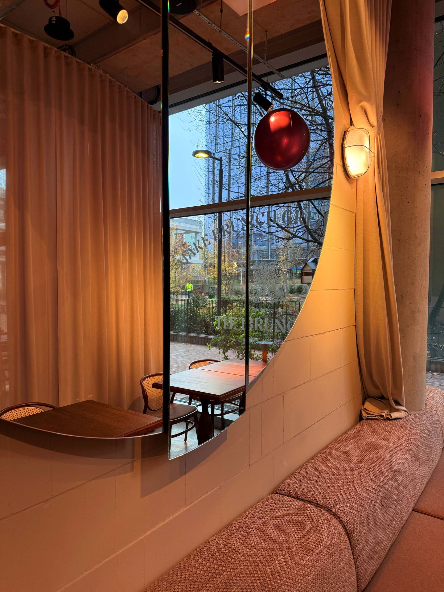 Kameralny lokal o powierzchni 200 mkw. mieści się w Office House. Wejście znajduje się w alejce prowadzącej z ulicy Pańskiej na patio biurowca. Z okien restauracji widać zieleń i charakterystyczną konstrukcję pergoli, która już w pół roku po oddaniu do użytku porasta bujną roślinnością. Duże misy zbierające deszczówkę tworzą naturalne oazy dla ptaków, a połączenie okazałej zieleni, spływającej z pergoli wody oraz klinkierowych alejek nadaje przestrzeni spokojny, niespieszny klimat, doskonale współgrający z nieformalnym charakterem restauracji. To miejsce staje się zielonym zakątkiem, sprzyjającym chwilom wytchnienia, mimo lokalizacji w jednej z najbardziej zurbanizowanych i biznesowych części miasta.